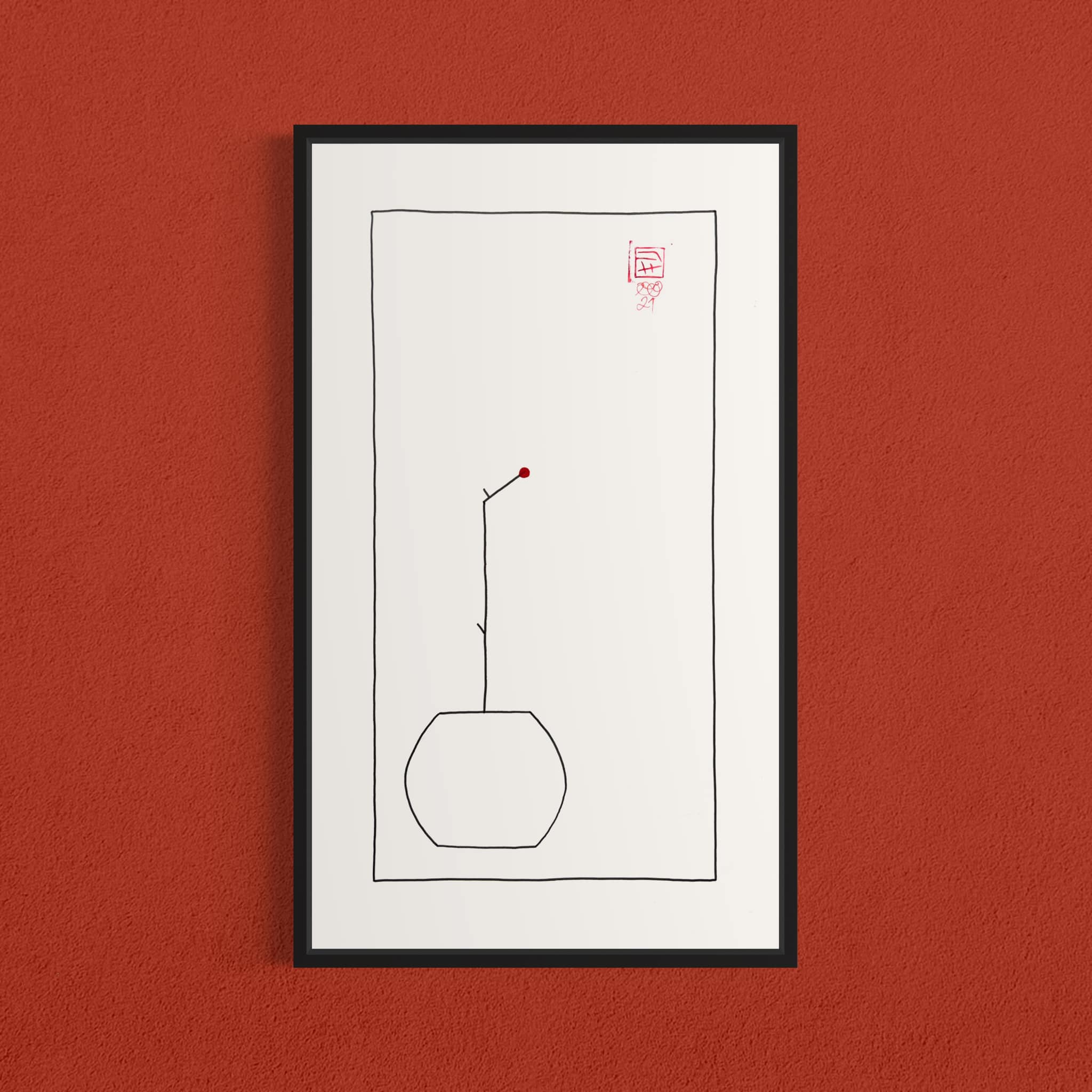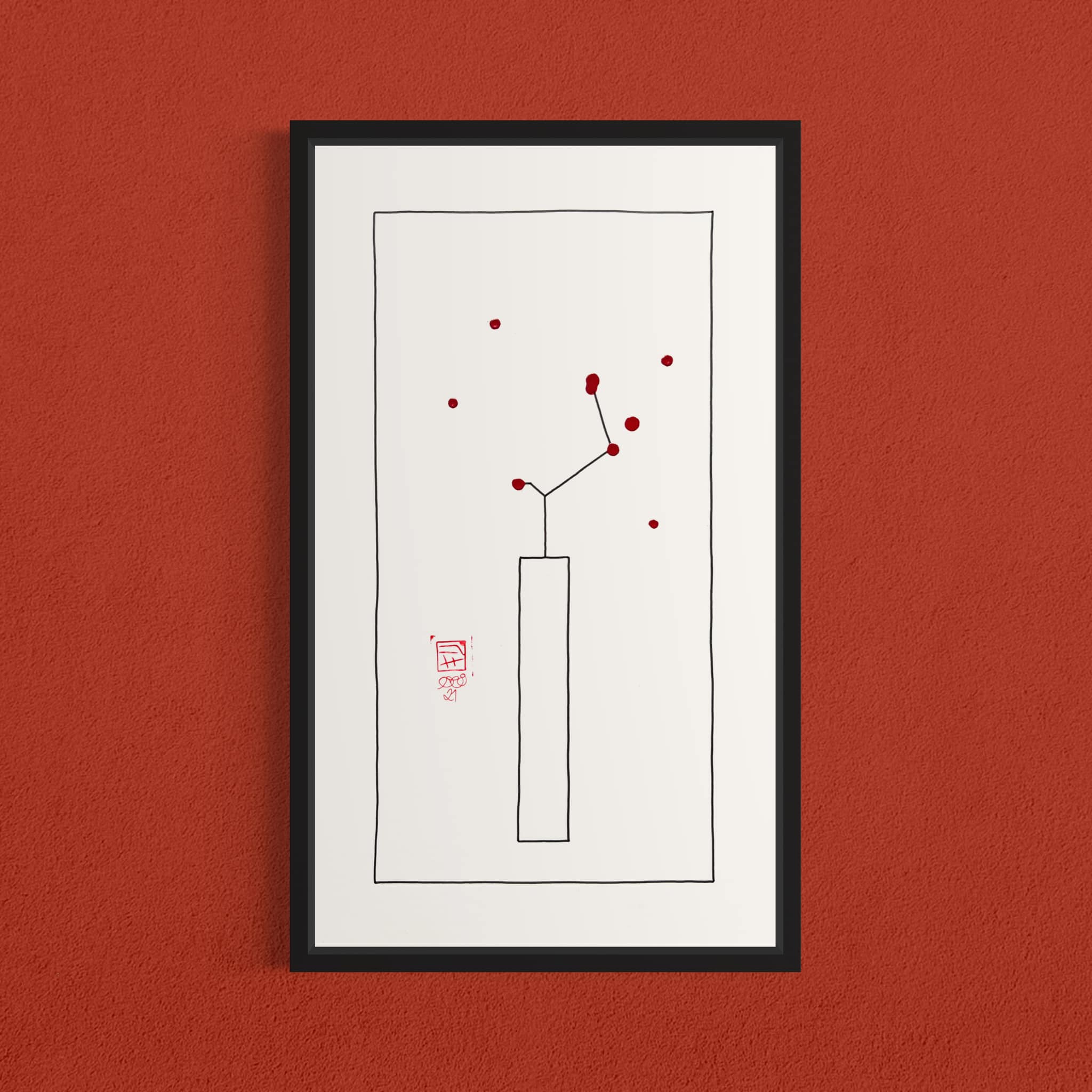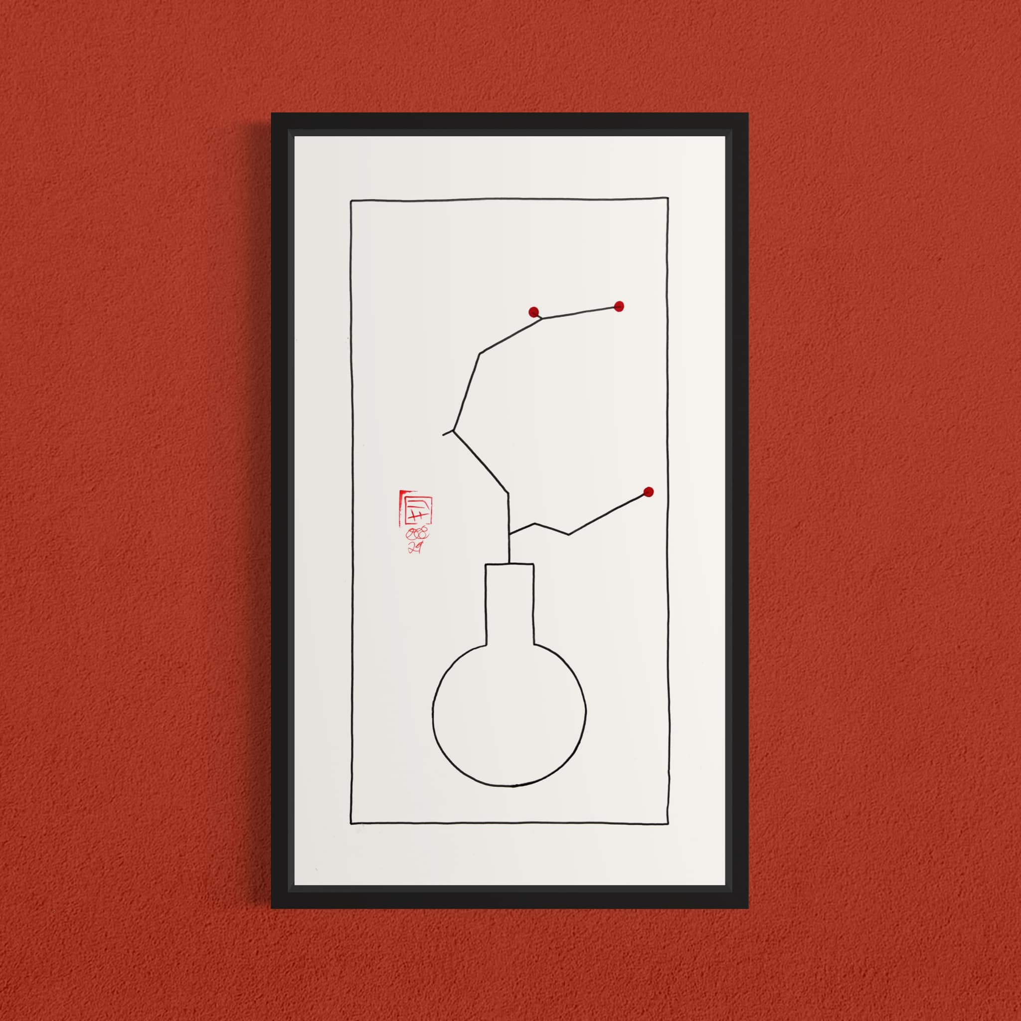 Ikebana caligrafi, fix Sakura Pigma, papír Canson Aquarelle, 2021